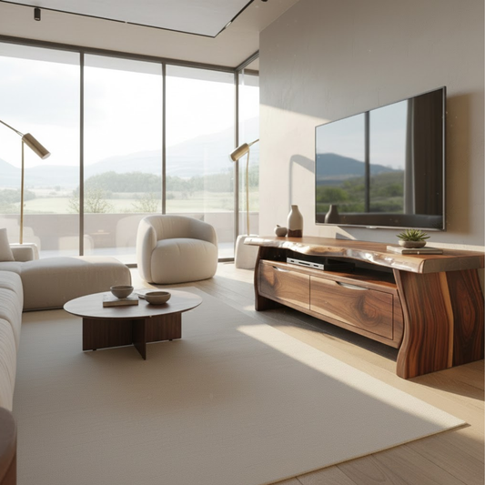Handcrafted Live-Edge Solid Wood TV Stand with Sculpted Curved Base