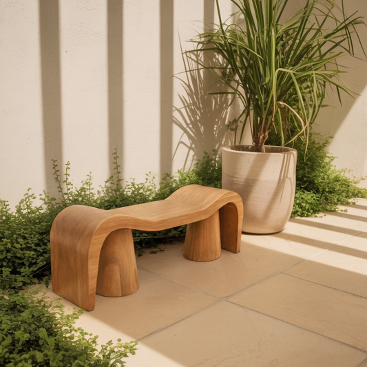 Contemporary Sculpted Wood Bench For Garden Or Patio