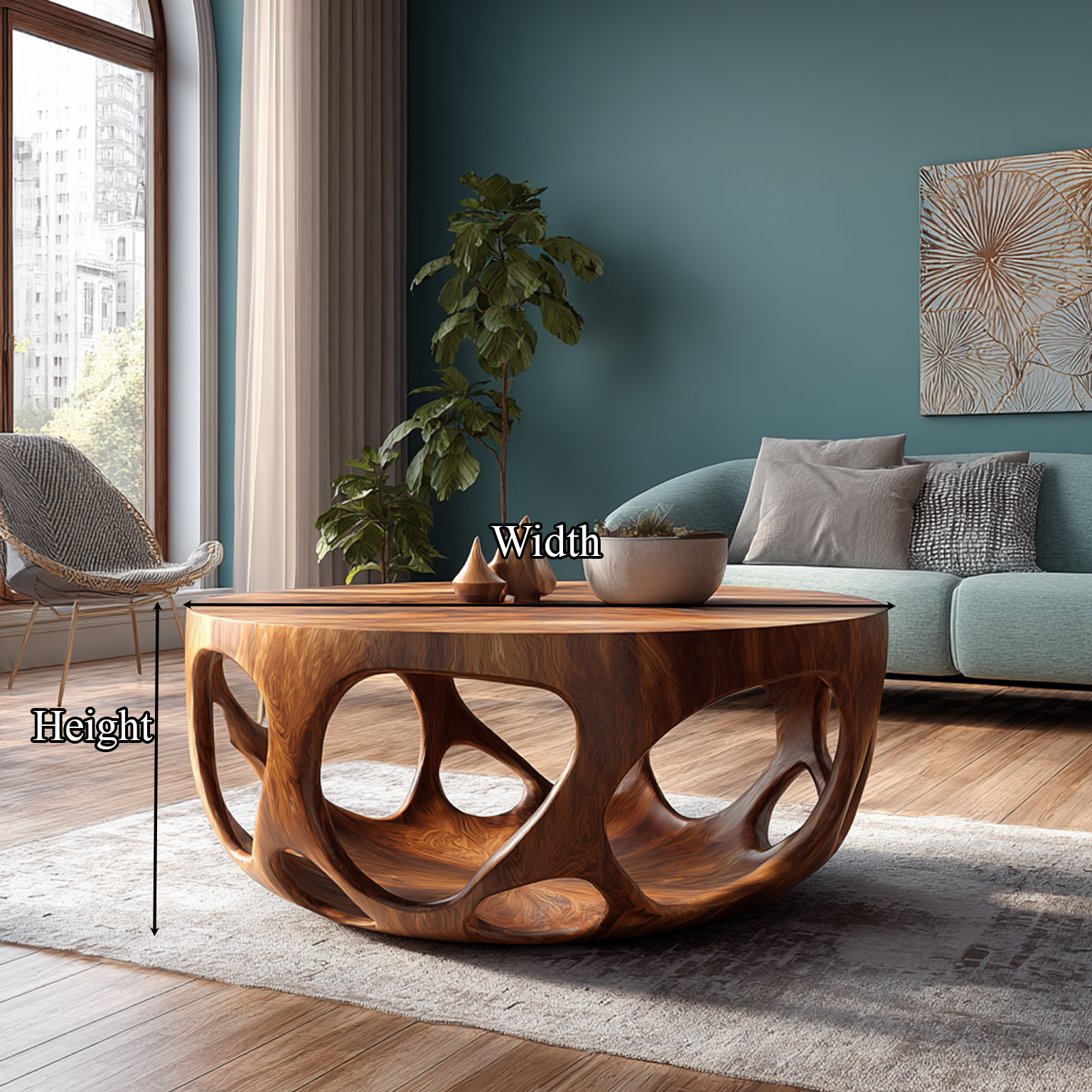 Our coffee table is made from premium tamarind wood, celebrated for its aesthetic appeal and durability. Each table is finished with natural wax and oil layers, delivering a silky-smooth surface that is both visually striking and reliable for everyday use.