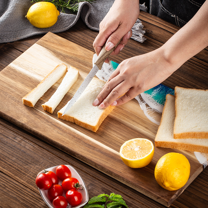 Crafted from richly grained acacia wood, this serving board features a striking resin inlay that captures the movement of ocean waves meeting the shore. Perfect for both meal prep and presentation, its smooth surface and stunning coastal design bring a touch of nature’s beauty to any kitchen or table.