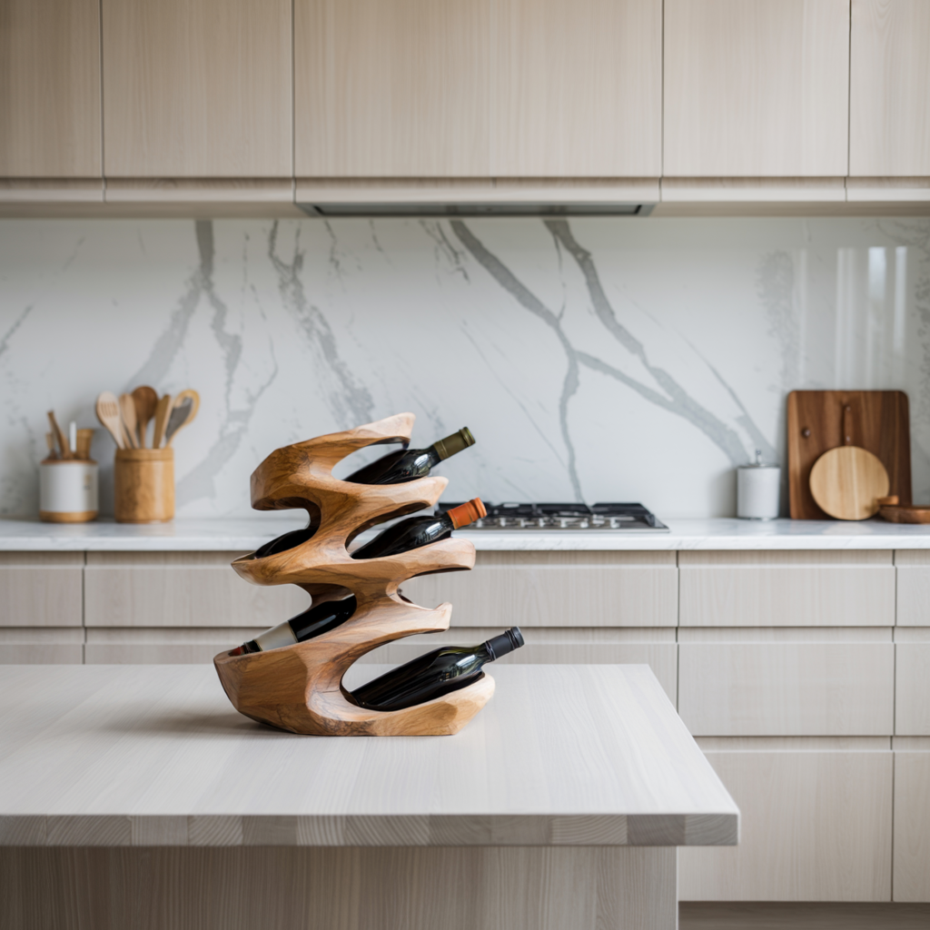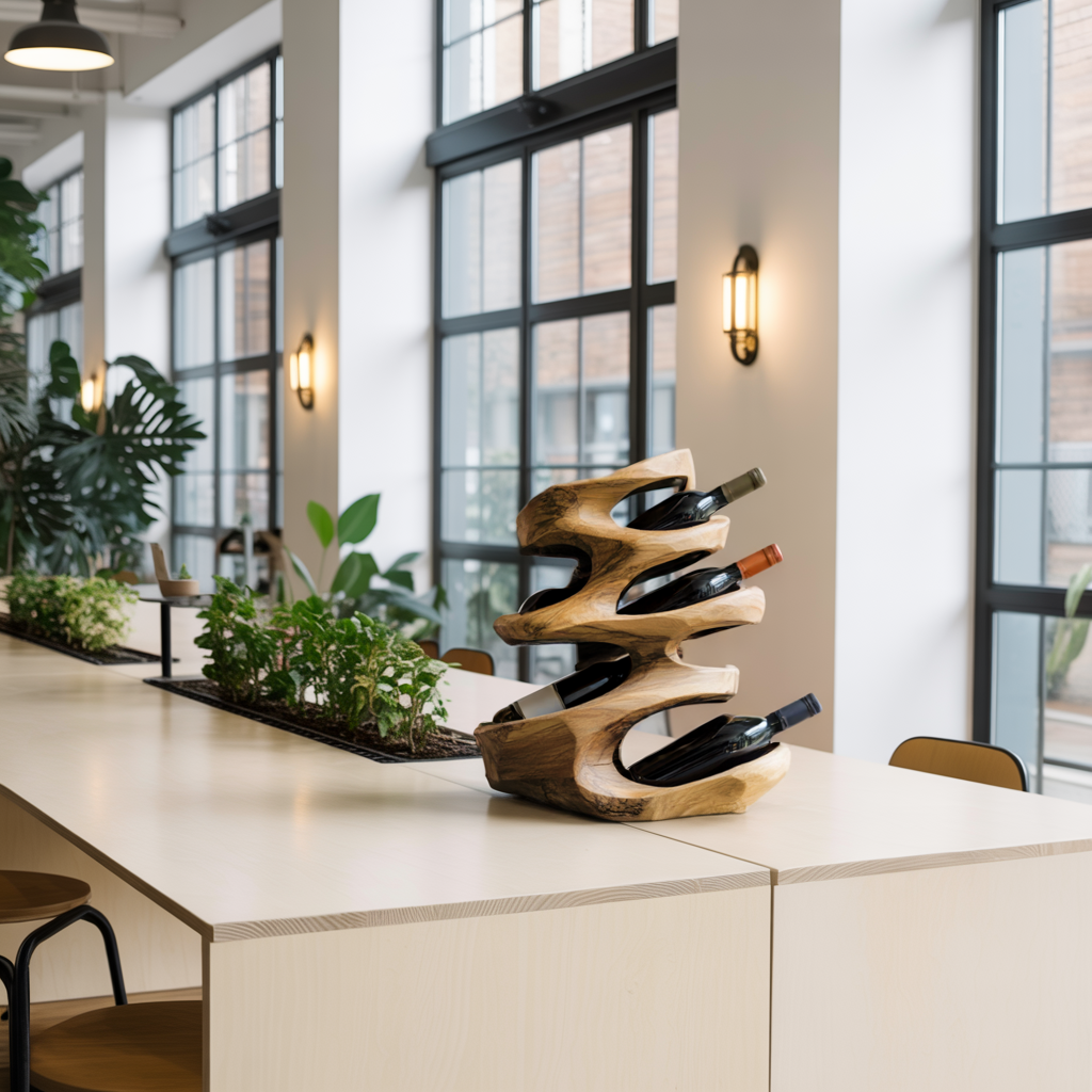 Each wine holder is individually handmade from solid, sustainably sourced Monkeypod wood. The organic grain patterns, rustic tones, and subtle variations in texture make every piece entirely unique. Its artisanal finish preserves the natural warmth of the wood while offering a tactile, earthy appeal that feels both rustic and refined.