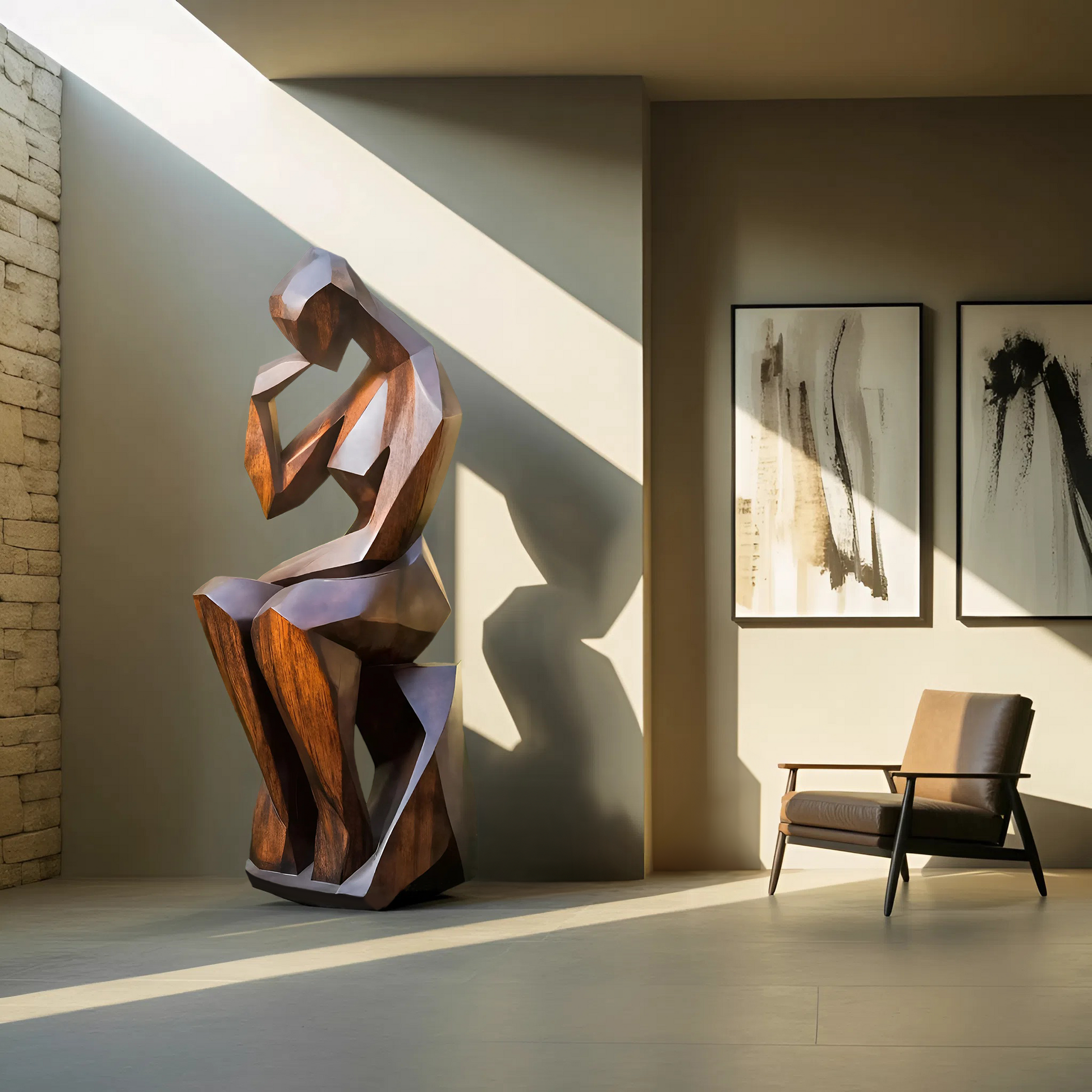 Inspired by the flowing movement of flames and the organic forms found in nature, this abstract wooden sculpture is more than just décor - it’s a visual statement. Its fluid, twisting curves evoke motion and harmony, creating a sense of energy that subtly transforms any space. Whether used as a focal point or an accent piece, it brings life and depth to minimalist, modern, and contemporary interiors.