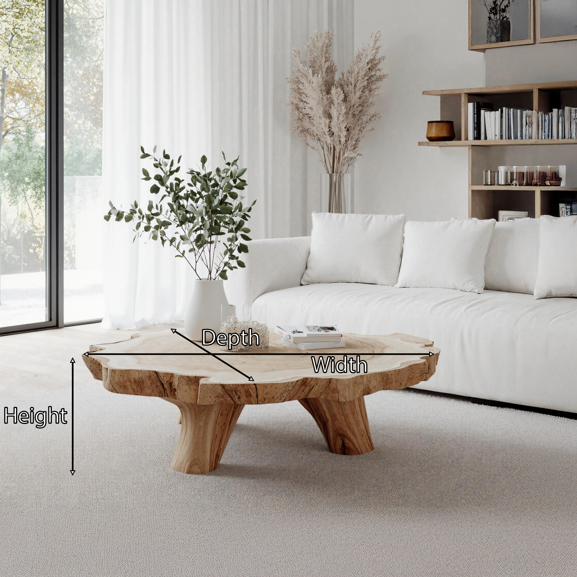 Materials Crafted from premium natural wood, each table features unique wood grain patterns and is suitable for both rustic and modern decor. Enhanced with natural waxes and oils, the product has a smooth finish and long-lasting durability.