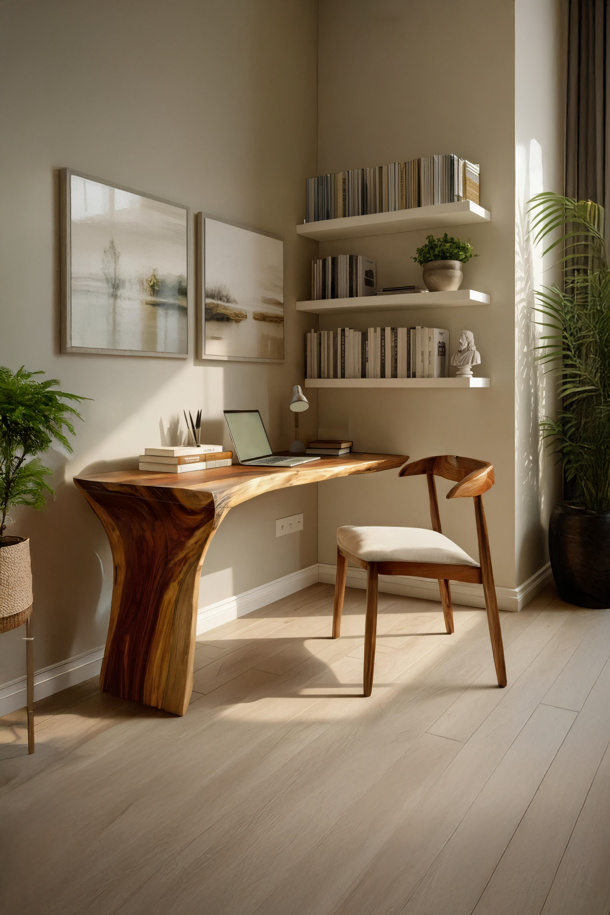 Bring organic texture and artisanal character to your workspace with the Handcrafted Live Edge Wood Desk For Home Studio Setup — a beautifully shaped piece that highlights natural edges, warm grain patterns, and a calm, functional layout. Its grounded design creates an inspiring setting for both creative work and everyday tasks.