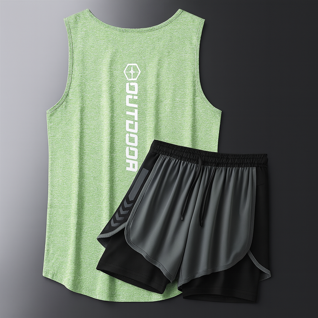 Crafted from ultra-lightweight ice silk mesh, this two-piece set keeps airflow high and body heat low through every rep, run, or rest. The dual-layer shorts add structured movement with a built-in liner, while the sleeveless top offers a cool, cling-free fit that stays fresh from warm-up to wind-down.