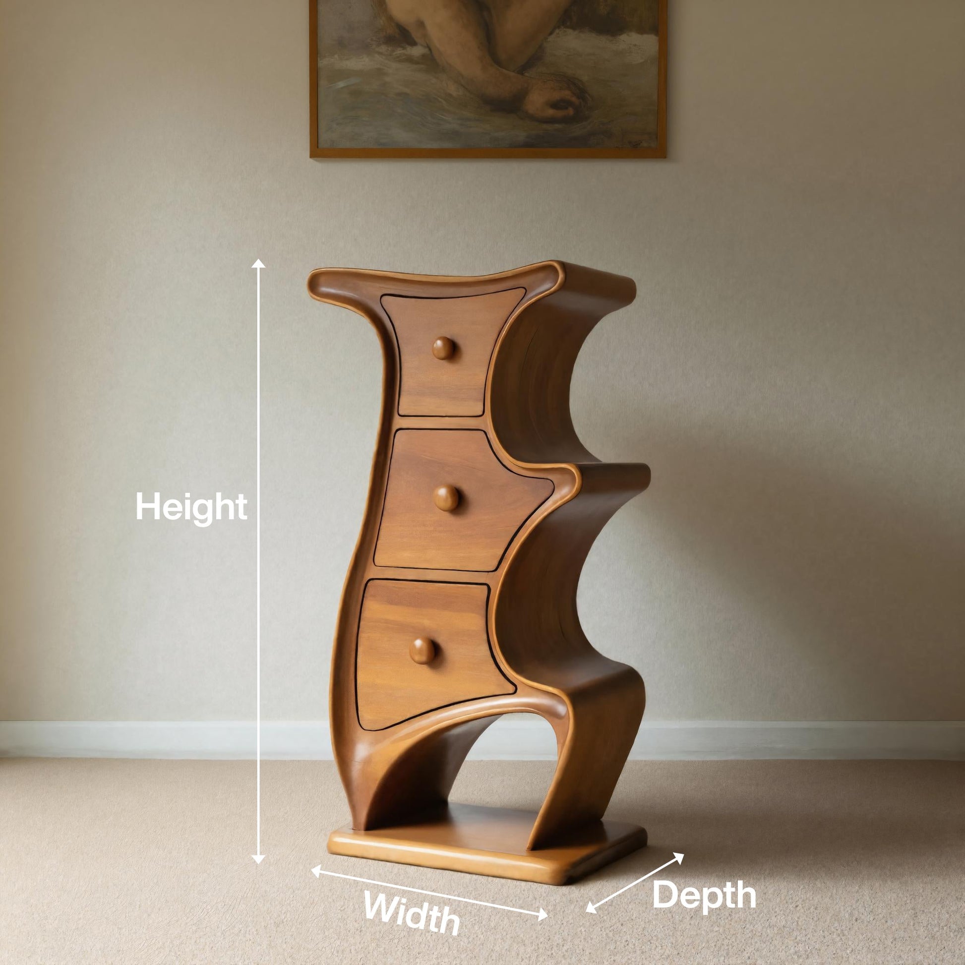 Modern Sculptural Wood Cabinet 3 Drawer Chest For Bedroom Or Living Room